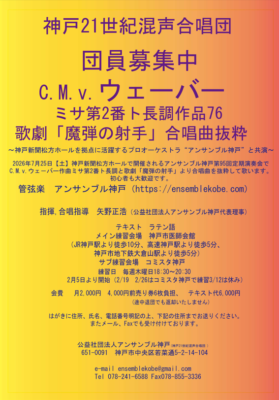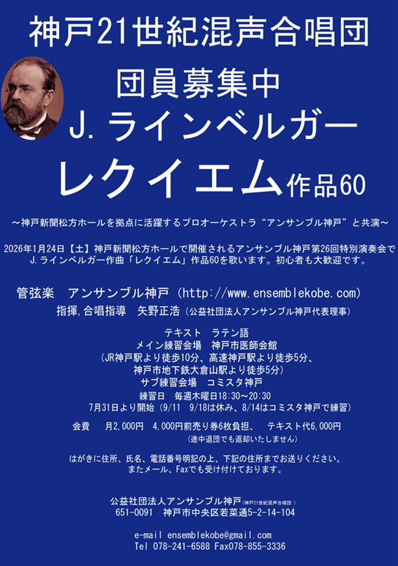 - 当団の指揮者、矢野正浩が令和7年度兵庫県文化賞を受賞いたしました。これを励みに今後も活発に活動を続けていきたいと思います。