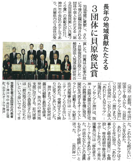 - 「第9回 貝原俊民 美しい兵庫づくり賞」を受賞しました。